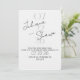 A modern and minimalist wedding invitation showcasing bold typography with a stylish overlay of the wedding date. The contemporary script font for the couple's names creates a sophisticated and artistic look. This clean, high-contrast design in grey and white is ideal for couples seeking a trendy, urban, or chic wedding aesthetic.