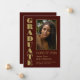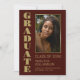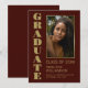 A modern minimalist custom photo burgundy and gold graduation announcement card.