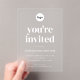 Acrylic Invitation, Size: 12.7 cm x 17.8 cm, Style: Clear Acrylic, CornerStyle: Rectangle, Print: Digital, Thickness: Standard (0.381 mm), Envelopes: None