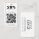 This minimalist and modern black and white discount coupon is designed for various businesses! The elegant card is perfect for makeup artists, chic hair stylists, and retail salons looking to enhance customer loyalty. Featuring a convenient QR code, customers can easily access exclusive offers, promotions, or your website with a quick scan.