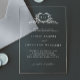 This elegant wedding invitation features refined calligraphy and modern typography printed on a clear acrylic style design for a sleek and sophisticated look. The delicate botanical crest monogram adds a romantic and timeless touch while the transparent background creates a contemporary, minimalist aesthetic. Perfect for luxury, modern, or formal weddings, this chic clear invitation makes a stunning first impression and pairs beautifully with elegant wedding stationery suites.