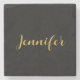 Modern Minimalist Calligraphy Name Black Gold Stone Coaster