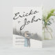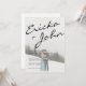 A modern but casual wedding invitation in a black calligraphic and sans serif font.