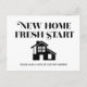 Simple black and white modern, minimalist Change of Address/Moving Announcement that gives your new address and an invitation to visit. Text says, "New home, fresh start."