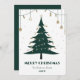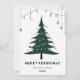 A stylish, modern Christmas card featuring a minimalist design of a Christmas tree in gold and deep green tones. The tree is decorated with simple ornaments and tiny, twinkling lights, set against a snowy white or midnight green background. At the bottom, a festive message like 'Merry Christmas' or 'Season’s Greetings' is written in elegant can be editable. Add subtle touches of sparkle on the edges of the card, giving it a classy, timeless look. This design should feel chic and warm, capturing the essence of the holiday season."