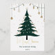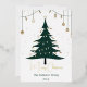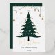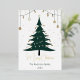 a stylish, modern Christmas card featuring a minimalist Christmas tree design in gold and deep green tones. The tree is decorated with simple ornaments and tiny, twinkling lights, set against a snowy white or midnight blue background with soft, falling snowflakes. At the bottom, a festive message like 'Joyful Holidays' or 'Season’s Greetings' is written in elegant, gold script. Add subtle touches of sparkle on the edges of the card, giving it a classy, timeless look. This design should feel chic and warm, capturing the essence of the holiday season."
