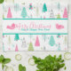This Christmas pattern of Christmas trees is designed in a modern Swedish minimalist style in modern pink, green and teal colours. There are 8 different Christmas trees total, some with holiday ornaments and some without. There is also a little pink birds floating around the design too. You can make the pattern smaller or bigger on this kitchen towel. Personalise this kitchen towel with your own greeting.