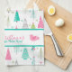 Modern Minimalist Christmas Tree Pattern Pink Teal Tea Towel