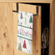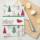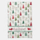 Modern Minimalist Christmas Tree Pattern Red Green Tea Towel