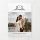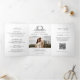 This elegant tri-fold wedding invitation features refined calligraphy and modern typography in a clean, minimalist layout. The delicate botanical crest monogram adds a timeless romantic touch while keeping the overall design chic and sophisticated. The tri-fold format provides generous space to include ceremony details, wedding timeline, venue information, icons, and a convenient QR code linking to your wedding website. A beautiful photo section on the back adds a personal touch, making this design perfect for modern, classic, or formal celebrations. Stylish, practical, and thoughtfully designed, this invitation allows couples to share all essential wedding information in one elegant piece of stationery.