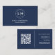 Modern Minimalist Custom Logo QR Navy Blue Business Card