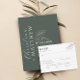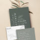 A minimalist wedding invitation in dark green for the ultimate chic look, Names are displayed big on the left side and wedding information on the right side. Other colours available in the collection. If you need any matching designs that are not in the collection or need any help, please let me know (Maria). Happy to help!!