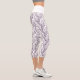 Modern Minimalist Dark Plum White Floral Capri Leggings