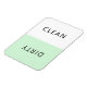 Modern minimalist pastel green dishwasher clean or dirty magnet for indicating dishes in home kitchen.