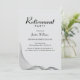 Celebrate a well-earned retirement with timeless elegance. This minimalist invitation features a soft grey background and a graceful wavy line graphic at the bottom—adding a subtle touch of movement and sophistication. The word “Retirement” and the honoree’s name are beautifully written in a modern script font, with “Party” neatly placed below in a clean, stylish layout. All party details are fully customisable in a clear sans serif font, making this design perfect for both corporate send-offs and family gatherings. The coordinated back design carries the same refined background for a polished finish.