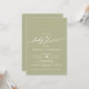 This minimalist baby shower invitation features a modern and elegant design with a gender-neutral soft sage green background, exuding a calm, sophisticated feel. The sleek white typography includes a mix of delicate, flowing script for the words "baby shower" and clean, modern fonts for the event details, creating a balanced and stylish look. Perfect for a contemporary celebration, this customisable invitation offers a chic and timeless aesthetic ideal for welcoming a little one with grace and charm. Available as printed cards or an instant digital download.