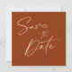 This trendy and eye-catching Modern Minimalist Elegant Wedding Save The Date Invitation features a modern and simple design that's perfect for couples looking to announce their big day in style. With a beautiful "Save the Date" saying in calligraphy script and terracotta hues, this save the date card is perfect for any wedding theme, including fall wedding, rustic wedding, classic wedding, minimalist wedding, and more. The minimalist design keeps the focus on the important details, such as the couple's names and wedding date, while still remaining stylish and eye-catching. This invitation exudes a touch of elegance and sophistication that will leave a lasting impression on your guests. Whether you're having an intimate ceremony or a grand celebration, this save the date invitation is sure to set the tone for your special day.