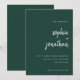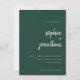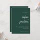 These elegant, minimalist wedding invitations feature white, modern script typography and clean, sans serif text for a simple and stylish emerald green design you will love.