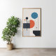 This Modern Minimalist Geometric Abstract Wall Art glossy poster print is a captivating AI-generated artwork featuring a composition of bold, minimalist circles and lines in blue, orange, black, and neutral tones. Inspired by Bauhaus and mid-century modern aesthetics, this piece exudes simplicity and balance, making it an ideal addition to contemporary, Scandinavian, or modern interiors. The harmonious arrangement of shapes creates a visually pleasing design that brings sophistication and elegance to any space, whether in a living room, office, or bedroom. This artwork uniquely blends geometric precision with artistic creativity, making it a standout choice for those who appreciate minimalist decor. Its clean, uncluttered lines and muted colours make it versatile and ideal for spaces needing a touch of modern art. This minimalist piece is perfect for housewarming gifts, anniversaries, or as a stylish decor statement for any modern art lover.