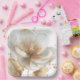 A reduced color image of a white and gold Poppy highlights the whole face of this plate.