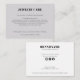 This elegant jewelry care card features a soft, modern design with a delicate gray background and refined typography, perfect for handmade and small business jewelry brands. The front provides clear, thoughtful care instructions to help customers preserve the beauty of their jewelry, while the back is designed for branding, including space for your brand name, website, contact details, and social media information.
