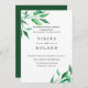 Modern watercolor botanical greenery leafy branches on white and hunter green backgrounds, wedding invitation. Customise text, font style, colour and size.