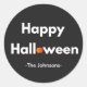 Add a modern spooky-chic vibe to your gifts, party favours, and envelopes with these personalised Halloween stickers 🎃. Featuring a clean modern “Happy Halloween” design with a pumpkin “O” and your custom family name, they’re perfect for Halloween parties, trick-or-treat bags, and festive packaging.