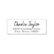 Modern minimalist address rubber stamp feature bold handwritten brushy script name in charcoal black and white colour, simple and stylish.