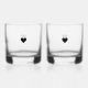 Modern Minimalist Black and White Heart Custom Whiskey Glass Set of 2 - Create your own personalised glasses by changing the heart colour, adding text, dates, monograms or names.
