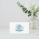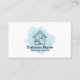 Modern and professional minimalist house cleaning and maid services business card featuring a simple minimal logo of a bucket and mop inside a house on a beautiful blue abstract watercolor background. Ideal for residential cleaning, commercial cleaning and professional services.