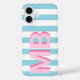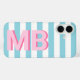 Create your own custom monogram iPhone case featuring your personalised initials on a striped background.