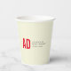 Modern Minimalist Initials Red Monogram Beige Paper Cups