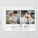 Modern Minimalist yet Elegant Calligraphy Ink Pen Script 2 Photo Wedding Engagement Announcement Save The Date Card with your QR Code wedding website address on back of card