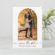 Modern Minimalist yet Elegant Calligraphy Ink Pen Script Couple Photo Arch Wedding Engagement Announcement Save The Date Card with your QR Code wedding website address on back of card