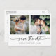 Modern Minimalist Ink Script Save The Date 2 Photo Postcard