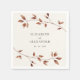 These modern minimalist fall wedding napkins feature simple sprigs of watercolor autumn leaves framing the names of the bride and groom and the wedding date.