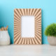 Etched wooden picture frame with modern minimalist line pattern
