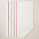 This modern minimalist white sherpa blanket features thin vertical lines in black, grey, and red. Great for contemporary bedrooms.