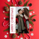 Create your own minimalist Christmas card this holiday season. This design features simple modern typography Merry Christmas, custom photo background and red colour design.