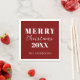 Add a festive touch to your holiday table with these napkins from the Modern Merry Christmas Script Collection. Designed with a bold red background and crisp white minimalist typography that reads Merry Christmas with a customisable year with customisable text below for your name, company name, or personal message, these napkins are the perfect blend of modern style and seasonal cheer. Ideal for Christmas parties, holiday dinners, company gatherings, or festive celebrations at home, they bring both practicality and style to your event. Their modern, red and white design pairs beautifully with the coordinating paper plates, wine labels, gift tags, and stickers in the collection, making them a versatile addition to your holiday party essentials.