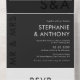 The bottom of the invitation features a separate section for the RSVP card, maintaining the same modern and minimalist design with black text on a white background.