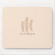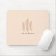 An elegant, modern, minimalist mouse pad in neutral tones with personalised monogram (light brown) and name (dark brown serif font).