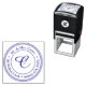 Add a touch of elegance to your mail with this classic Mr. & Mrs. Carter blue monogram address stamp. Featuring a beautiful script initial 'C' encircled by your address details in a clean, minimalist design, this self-inking stamp makes sending letters and packages a delight. The deep blue ink provides a sophisticated contrast against any paper, ensuring your correspondence stands out. Perfect for wedding invitations, thank you notes, or everyday mail, this modern address stamp brings a personal and polished flair to your stationery. Make every piece of mail uniquely yours with this charming and functional design.