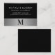 Modern Minimalist Monogram on Black Silver Trim Business Card