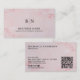 This elegant business card design features a soft pink marbled watercolor background that adds a touch of sophistication and femininity, making it ideal for beauty, wellness, fashion, or creative industry professionals. The minimalist layout uses clean black typography for a refined and modern look, with a customisable monogram element that adds a personal branding touch. A built-in QR code on the back allows for seamless digital engagement, while clear contact and social media icons support a strong professional presence. This design balances stylish aesthetics with practical functionality for a polished, professional first impression.