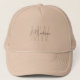 Elevate your everyday style with this Modern Minimalist Monogram Beige Trucker Hat. Featuring personalised initials subtly embedded in the background and a name displayed in a sleek, modern script on the front, this hat is the perfect blend of simplicity and personal flair. Ideal for those who appreciate minimalist design and want to add a personal touch to their accessories. Whether it's for yourself or as a unique gift, this trucker hat offers comfort and style in one.