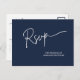 Modern Minimalist Navy and White Wedding RSVP Postcard