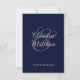 Confirm your guest list with this elegant two-sided wedding RSVP card. The front features a modern minimalist design with a clean white background and bold navy blue script, providing a simple yet beautiful way for guests to respond. The reverse side echoes the wedding invitation with a sophisticated navy blue and silver script design. This wedding RSVP card is a perfect match for a classic, nautical, or modern wedding theme, ensuring a cohesive and polished look for your wedding stationery suite.