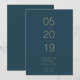 This minimalist, chic and modern save the date card features a white background with wordings in simple and modern blue letterings. The reverse side features a navy blue background. Personalise it for your needs. You can find matching products at my store.