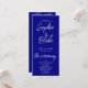 The front of the program features a tasteful combination of block lettering, script lettering, and well-thought-out spacing. This design element ensures that every word stands out against the deep navy blue background, creating a visually captivating and modern aesthetic. The minimalist approach allows the beauty of your love story to take centre stage.